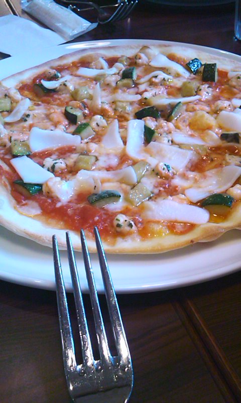 これは海老と烏賊とセルバチカ(ルッコラの原種)のピザで都会風の薄い生地がするっと入ります。